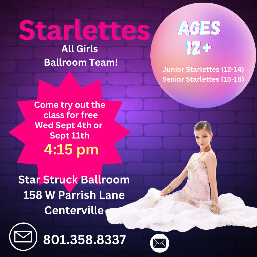 Star Struck Ballroom Team Auditions this month! We are looking for a few more young dancers to join our team! We are looking for young ladies and young men with performance and movement-to-music experience! If you miss the audition but are interested in auditioning for the team, please contact us.